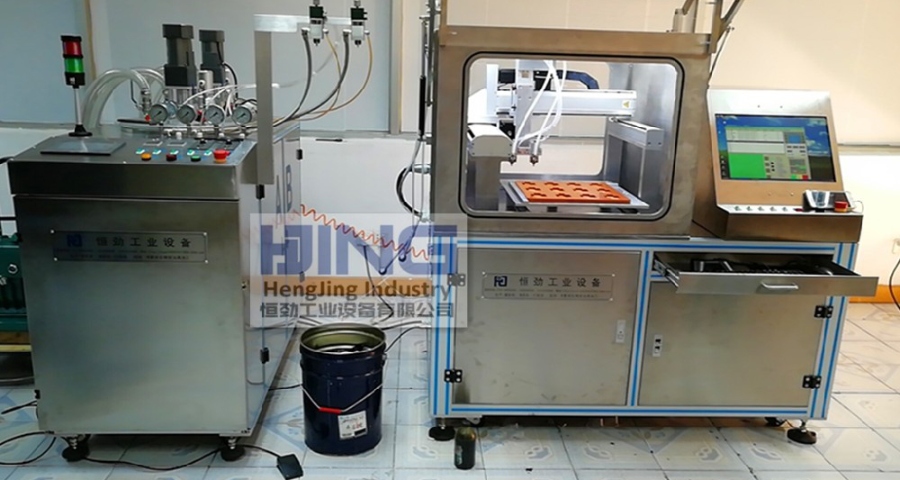 在真空狀態(tài)下實現(xiàn)AB膠全自動灌膠,真正解決了灌膠求高,縫隙小導(dǎo)致膠水難滲透,線圈常壓灌膠難脫氣泡等一系列氣泡問題。